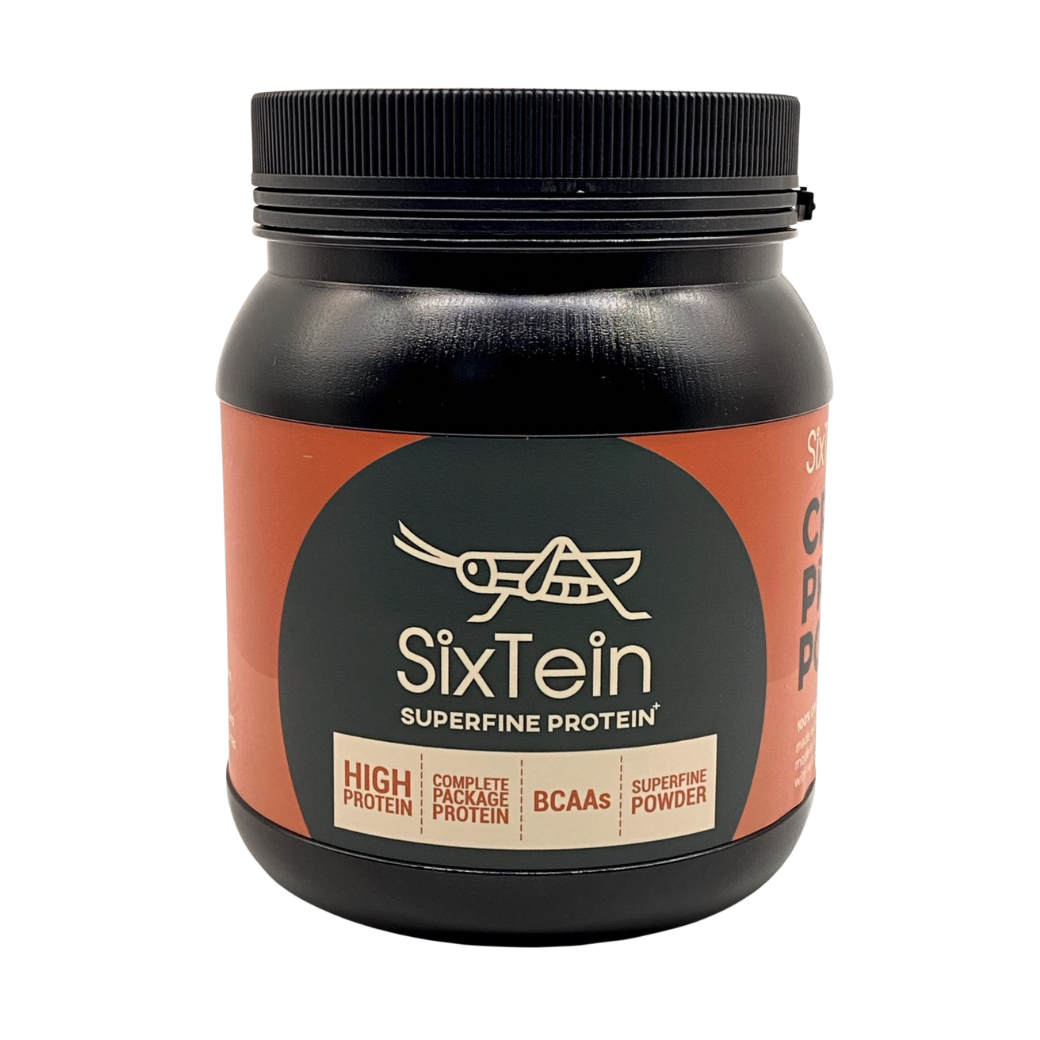 Sixtein® superfine cricket protein powder is a 100% all natural cricket protein powder. It contains over 70% protein content with high BCAAs. It contains Prebiotic fiber, vitamin B12 and riboflavin and biotin and minerals such as zinc, iron, magnesium, and copper.